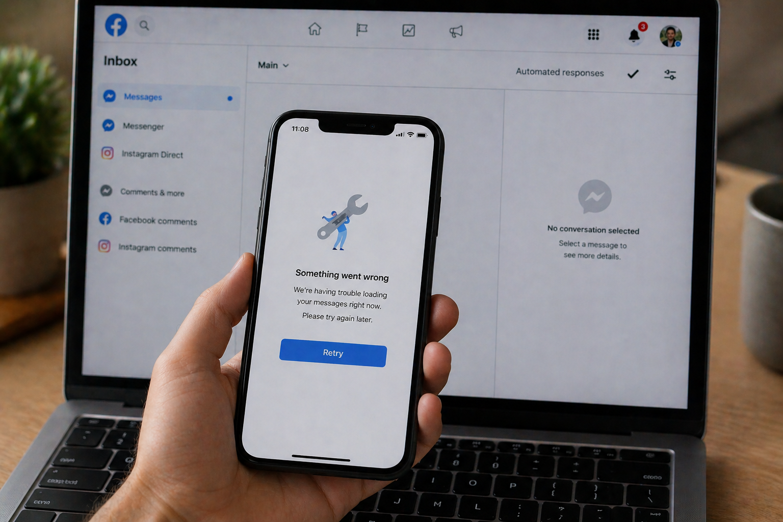 Inbox depends on multiple services, so it can fail independently. Use Meta’s troubleshooting guide as your baseline steps, because it aligns with the idea that messages and comments surfaces can have distinct issues: Troubleshoot Inbox issues.