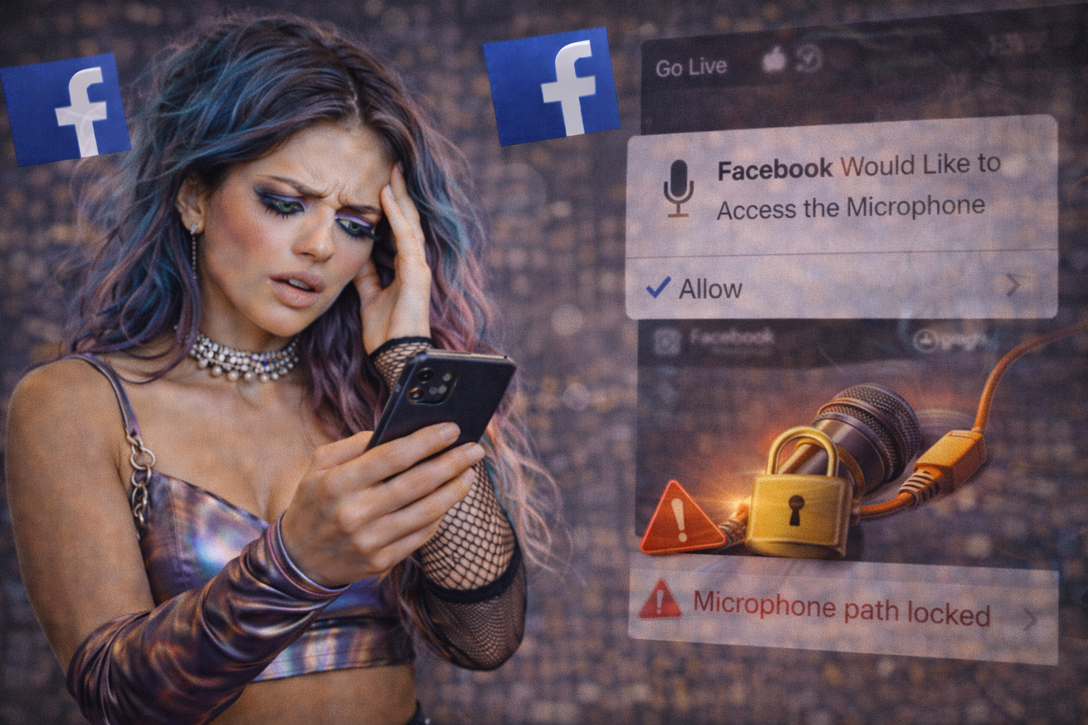 When the microphone permission exists but the audio path is locked, Facebook sees a contradiction: